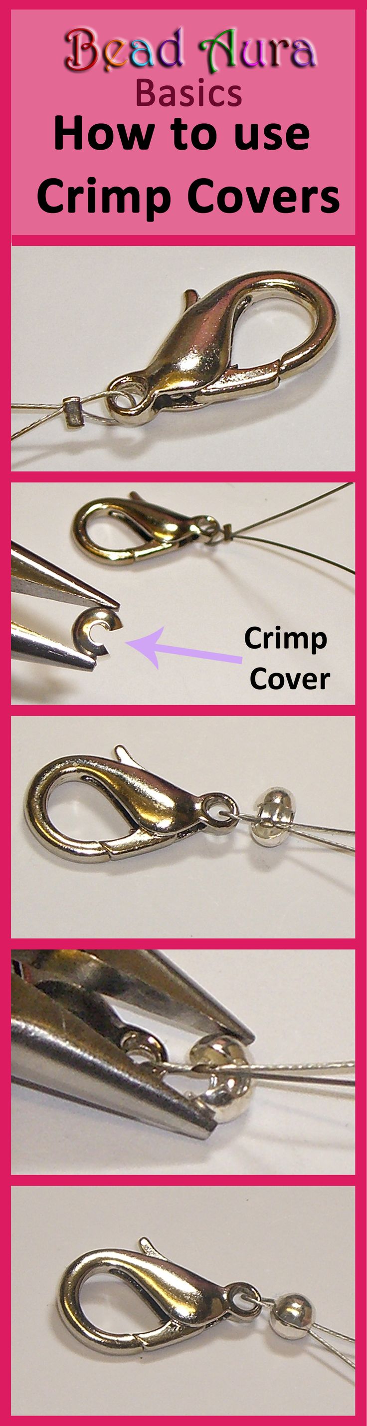 Basics to making jewellery - how to use a crimp cover. They are used to cover up a crimp for a more polished look. When they are closed, they will look like a metal bead.