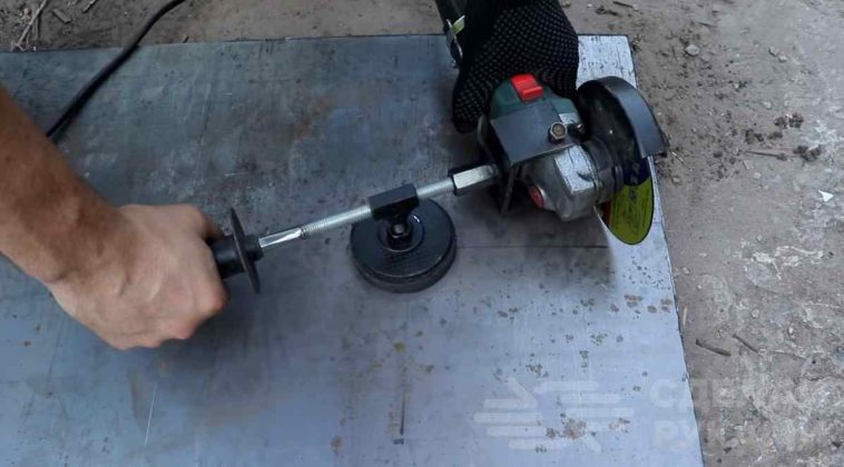 Магнитный «циркуль» для угловой шлифмашинки Вырезать ровное круглое отверстие в листовом металле с помощью болгарки с отрезным диском, удерживая ее в руках, весьма проблематично. У новичка такой