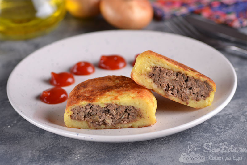 Картофельные зразы с печенью на сковороде.