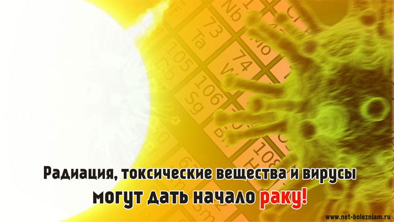 Что такое рак и как он возникает? Возникновение мутации не всегда имеет четкое объяснение. Мутация может быть внезапной, но часто способствующими факторами являются радиация (радиоактивное излучение), солнечные лучи, натуральные и синтетические вещества, вирусы.