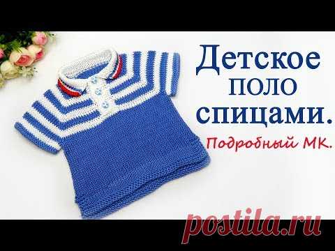 Футболка ПОЛО спицами. Реглан сверху .Росток. Подробны мастер класс.