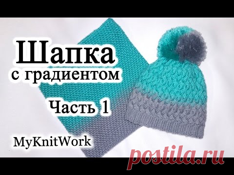 Шапка узором плетенка с градиентом спицами. Вязание спицами. Часть 1.