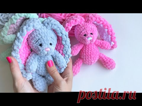 Зайчик крючком из плюшевой пряжи. Часть 1