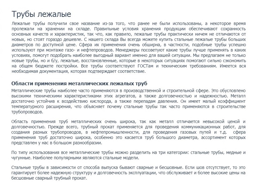 Лежалые трубы получили свое название из-за того, что ранее не были использованы, а некоторое время пролежали на хранении на складе.