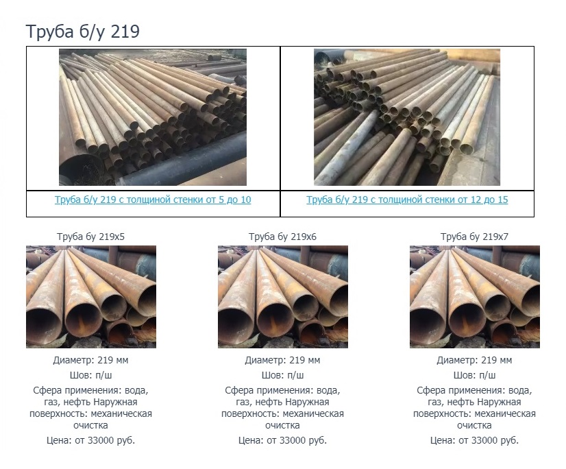 Труба бу 219 изделие металлопроката цилиндрической формы, внутри полое, достаточно большой длины, с относительно тонким сечением. В продаже имеется не только продукция б/у, но и так называемые лежалые трубы.