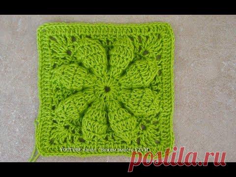 Квадратные мотивы крючком. Объемный цветок «Середина лета» Урок 148