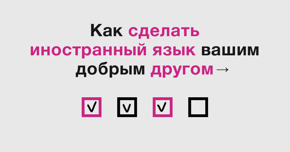 Надоело учить иностранный язык? Бросайте это дело. Начинайте на нем жить! Чек-лист поможет сделать иностранный язык частью вашей жизни. Больше не нужно выполнять скучные упражнения и зубрить слова, которые не пригодятся. Внедряйте язык в повседневную жизнь, и вы заметите, как за месяц-другой начнете на нем жить. Повесьте чек-лист на видное место. Каждый день делайте маленький шажок и ставьте галочки. Enjoy.