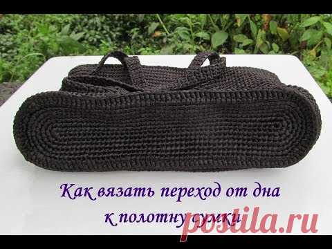 Как вязать переход от дна к полотну сумке / transition from the bottom to the canvas bag