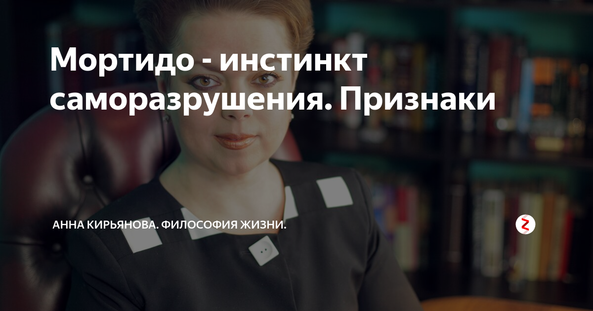 Мортидо - инстинкт саморазрушения. Признаки Сначала Фрейд оспаривал инстинкт смерти, заложенный в человека. Его описала Сабина Шпильрейн в начале 20 века. Фрейд признавал только инстинкт жизни, великий Эрос, либидо. Инстинкт самосохранения и любви. Но потом учёный понял, что где-то в глубинах подсознания есть программа смерти. Она просто есть - и всё. И в определенный момент, скажем, в старости и дряхлости, эта программа включается. Пришла