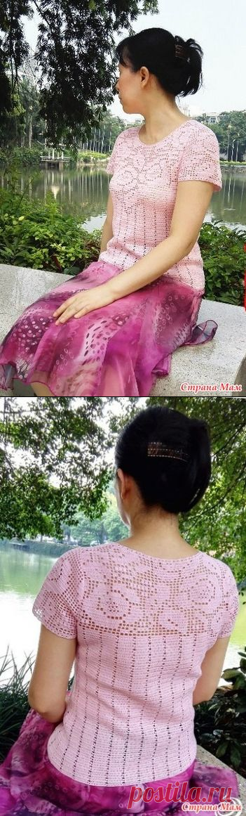 Розовая кофточка с кокеткой из роз - Все в ажуре... (вязание крючком) - Страна Мам