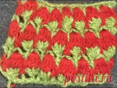 Узор Клубнички тунисским вязанием крючком .Tunisian crochet