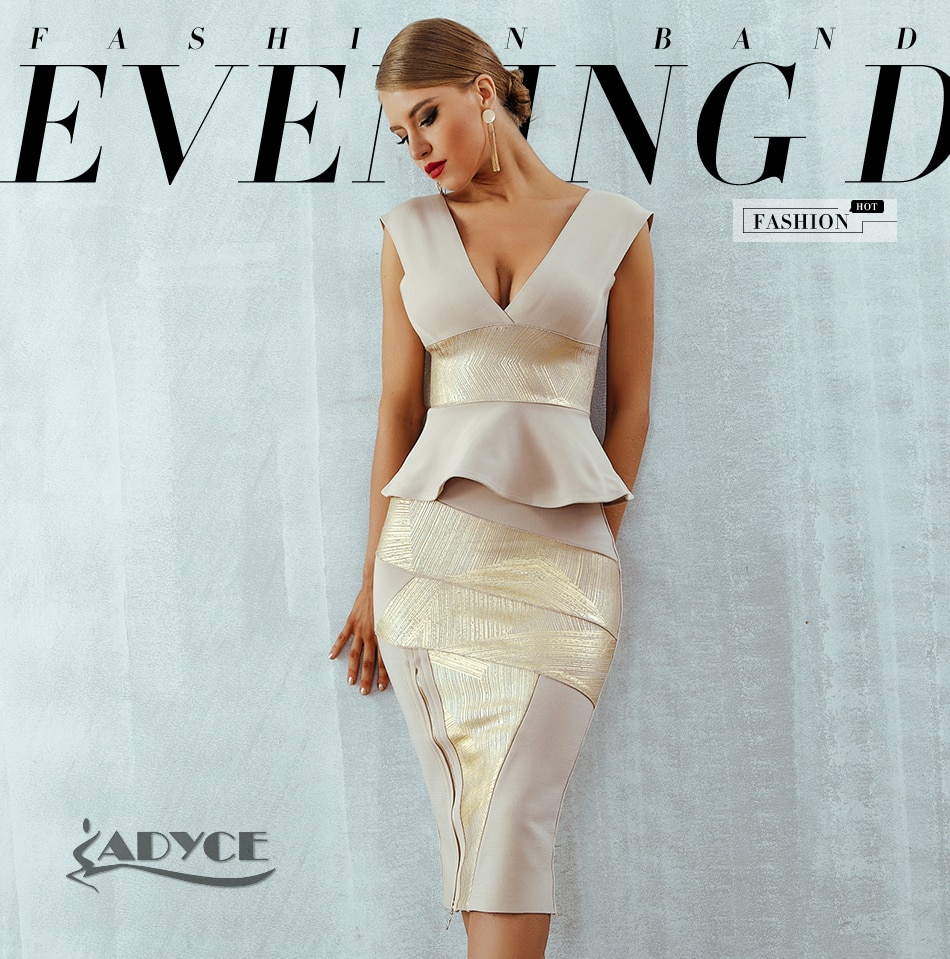 Женское вечернее платье ADYCE, кремового цвета, облегающее платье без рукавов с V образным вырезом, оборками и молнией в стиле звезд, для лета, 2019-in Платья from Женская одежда on Aliexpress.com | Alibaba Group