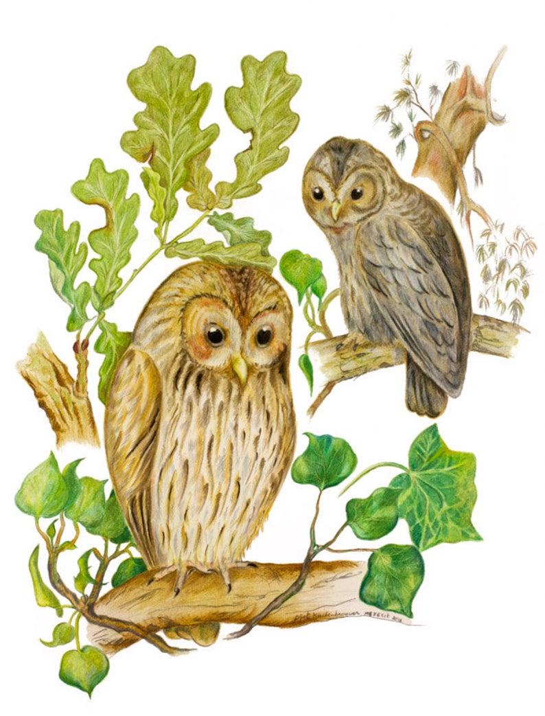 Original drawing of Brown Tawny Woodland Owls Owl Bird Art | Etsy