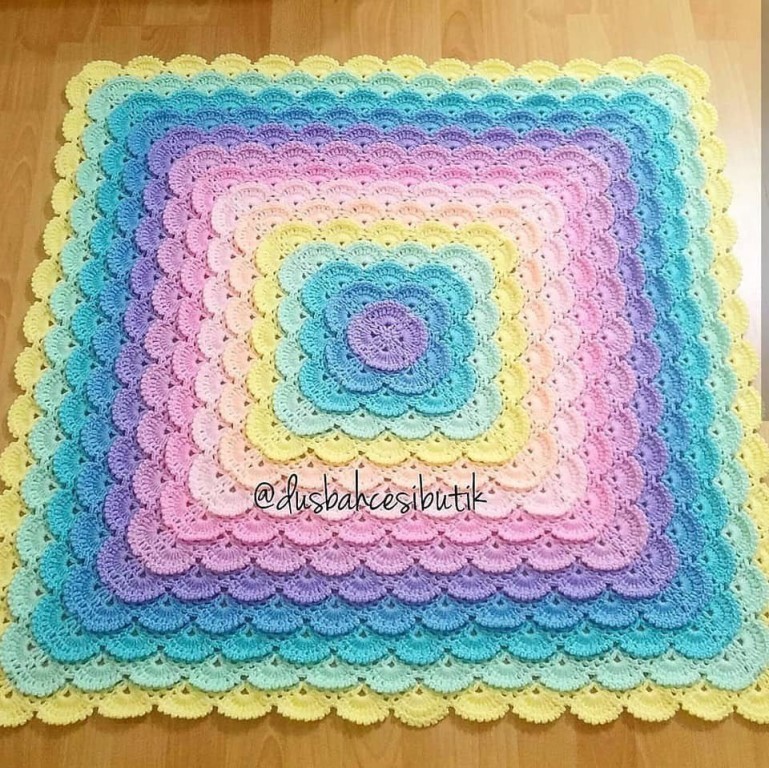 Яркий детский плед крючком