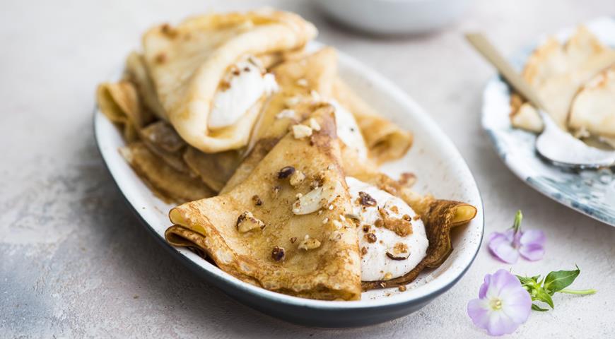 Блины на ряженке с банановым творогом — Фактор Вкуса