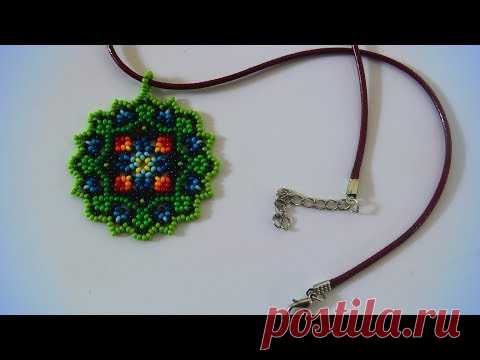 Кулон оберег из бисера в технике Уичольских мотивов. Бисероплетение. Мастер класс