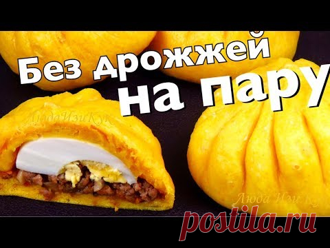 Пишні Булочки на пару Тісто як ПУХ без дріжджів з соковитою м'ясною начинкою і яйцем. **** Складові: тісто: Борошно .... 300 г Йогурт (кефір) ... 250 г Сіль ...