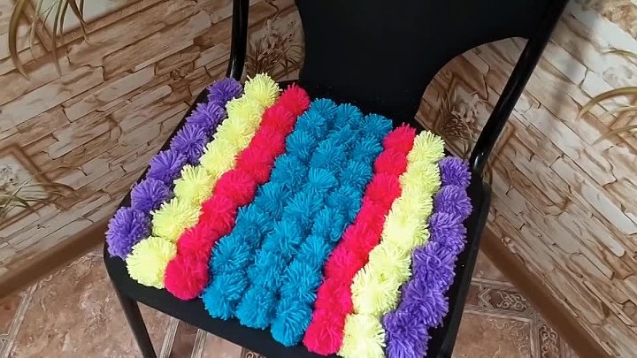КАК СДЕЛАТЬ СИДУШКУ на СТУЛ из ШЕРСТЯНЫХ ПОМПОНОВ