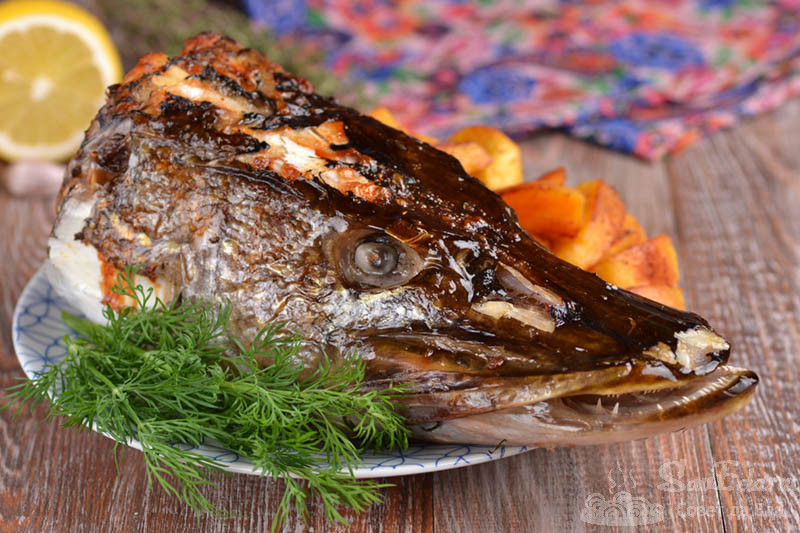 Щучья голова с чесноком в духовке. Оригинальное и очень вкусное блюдо из щучьей головы с чесноком и сушеными веточками тимьяна. Для приготовления подойдет одна большая голова или несколько небольших щучьих голов. Рыбу предварительно маринуем и запекаем в духовке. Получается потрясающе ароматная щука, которую можно подавать с зеленью и запеченным картофелем.