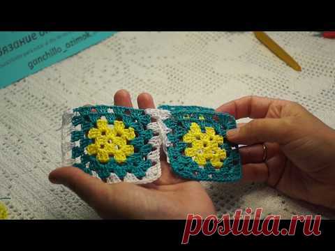 Мотив "Бабушкин квадрат" и соединение мотивов, вязание крючком(узор № 251)