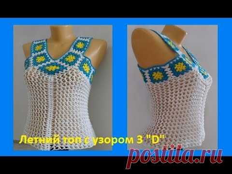 (9101) Топ 3" D" с кокеткой бабушкин квадрат, вязание крючком,crochet blouse 3 D ( В № 156) - YouTube