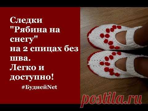 Следки "Рябина на снегу" на 2 спицах без швов. Вязание спицами