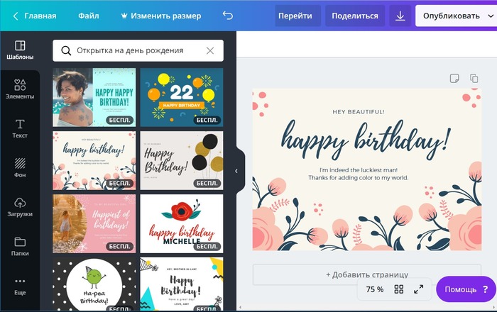 Создаем открытку онлайн в графическом редакторе Canva