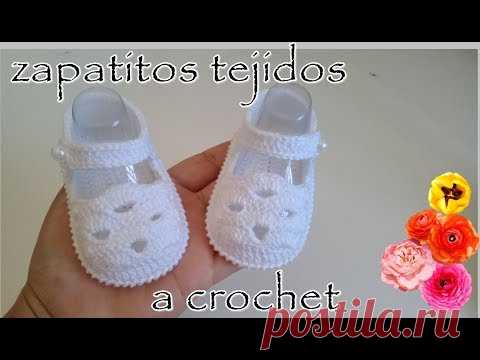 zapatito tejido para bebé en punto fantasia -Modelo Elena-0 a 3 meses