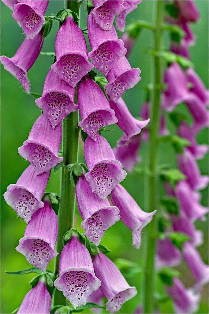 Foxglove (Digitalis purpurea) Foxglove (Digitalis purpurea), too common foxglove, purple foxglove and lady's glove, is a species of flowering plant in the plantain family Plantaginaceae. Foxglove is native to and widespread throughout most of temperate Europe. It is also naturalised in parts of North America and some other temperate regions. The flowering stem develops typically 0,5 - 2 m tall, sometimes longer, depending on variety. The flowers are arranged in a showy, t...