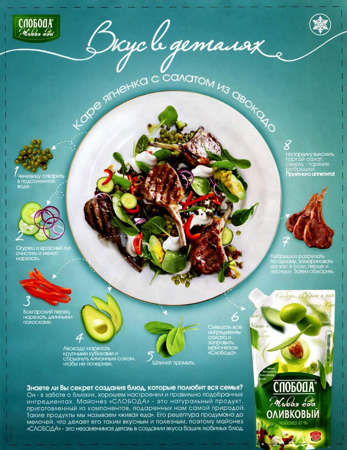 Каре ягненка с салатом из авокадо