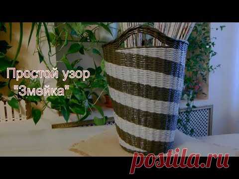 Корзина для хранения газетных трубочек или как сплести узор "Змейка" - YouTube