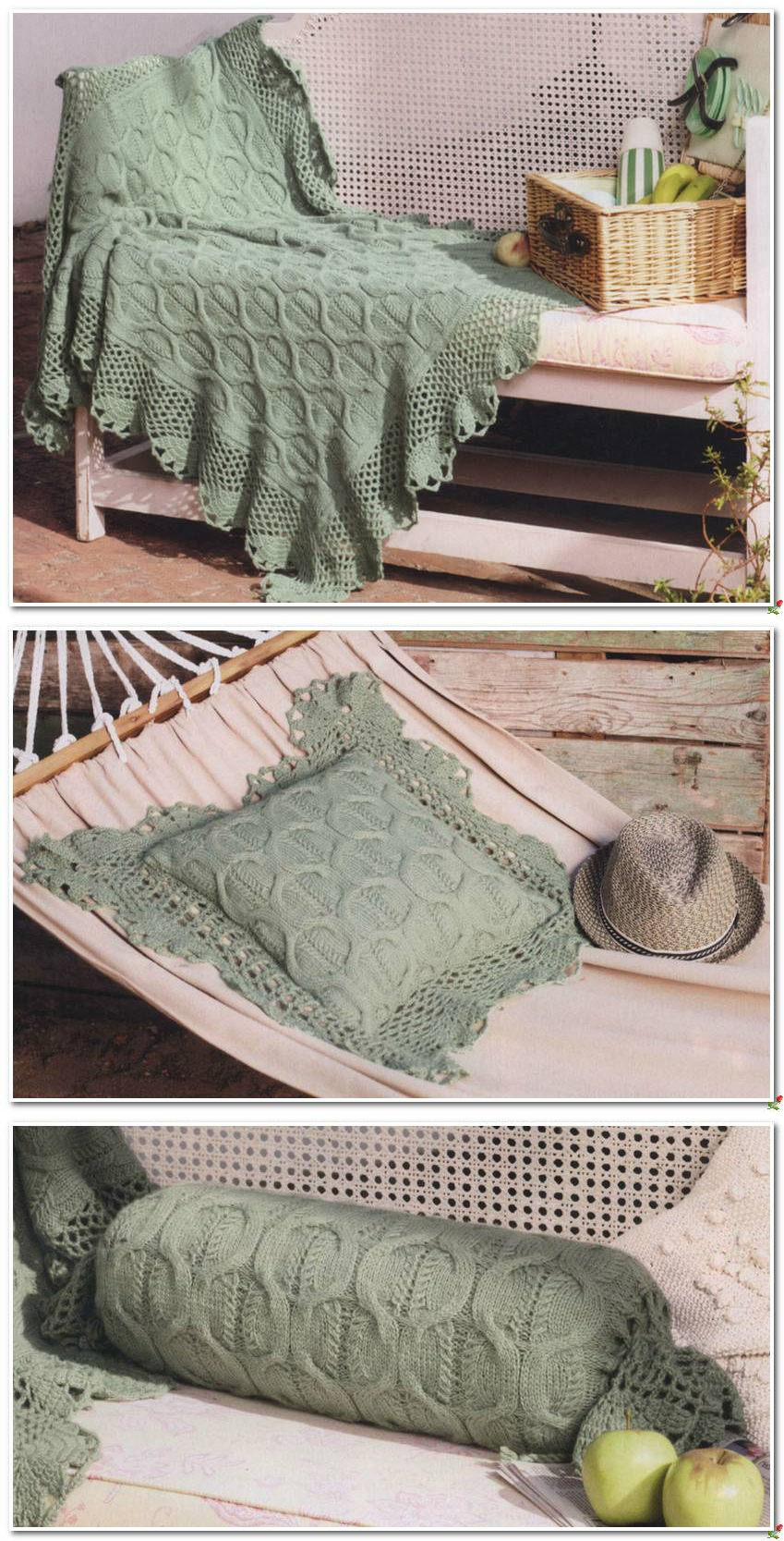 Комплект: плед, квадратная подушка и подушка-валик спицами и крючком. / Обсуждение на LiveInternet - Российский Сервис Онлайн-Дневников
