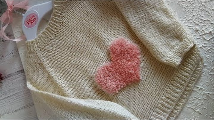 2часть/ Худи с плюшевым сердцем / Детский свитер на весну/ Детский худи спицами мастер класс