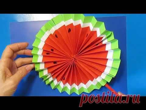 СПЕЛЫЙ АРБУЗ-оригами из бумаги сделать (детские поделки своими руками)Арбуз-Веер подарок подруге