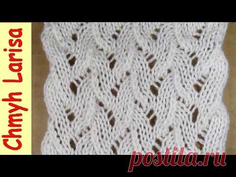 Красивый ажурный узор спицами "АЙВИ" видео, схема с описанием. Ажурный узор для палантина спицами. Ажур спицами для шарфа. Простые узоры спицами. Вязание спи...