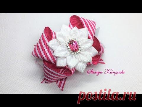 Украшение на заколку Канзаши / Бант из репсовых лент / Бант на шаблоне - YouTube
