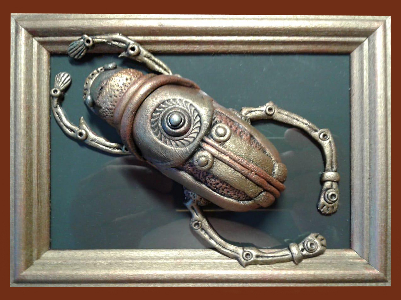Свои картины. Готовые работы и на заказ Мастер, предлагаю картины ручной работы, стиль разный, работы производятся из полимерной глины и прочих материалов, на стекле, обрамление деревянной рамой. Принимаю заказы по Вашим темам, возможно работа с фото (например, Вашего домашнего питомца, кроме портретов. На сайте представлены готовые работы в технике альтернативный стимпанк. Скоробей (17*25) Цена 3000 руб, включает почтовые расходы в Ваш город +7 938 483 8542 Александр