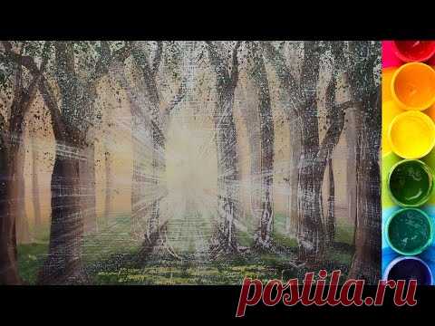 Как нарисовать ЯРКОЕ СОЛНЦЕ в лесу гуашью