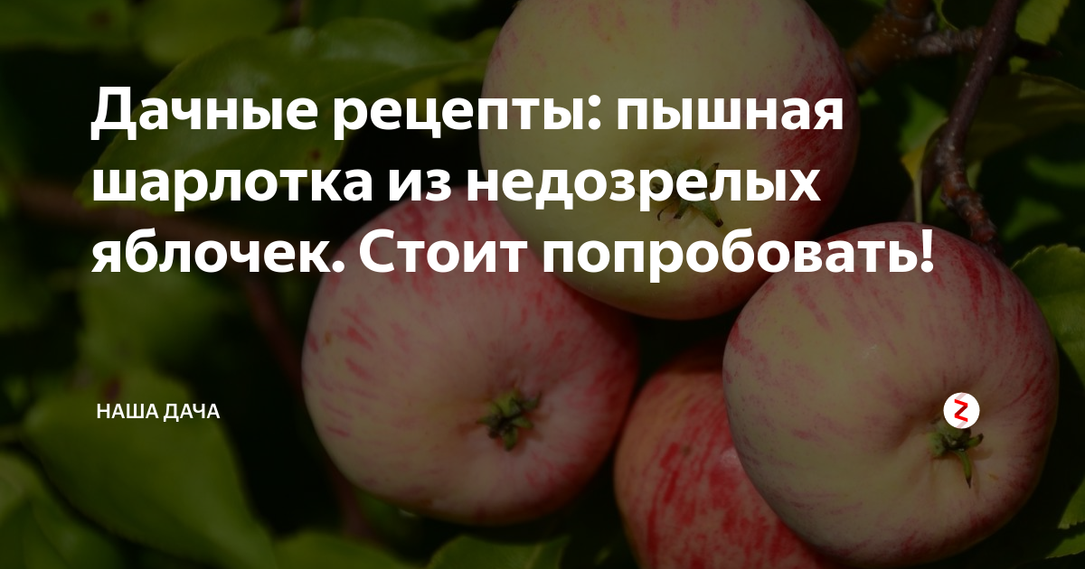 Дачные рецепты: пышная шарлотка из недозрелых яблочек. Стоит попробовать! Тем более, что бисквит по такому рецепту никогда не опадает, и готовится пирог, не считая времени выпекания, буквально за десять-пятнадцать минут. Да и зеленые яблоки, которые еще не созрели, но уже «задумались», вполне пригодны для этого пирога – и польза, и очень вкусно. Я вас уверяю, вам точно понравится.