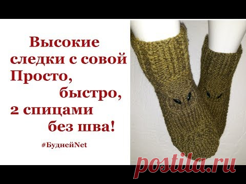 Высокие следки с совой Просто, быстро, 2 спицами без шва