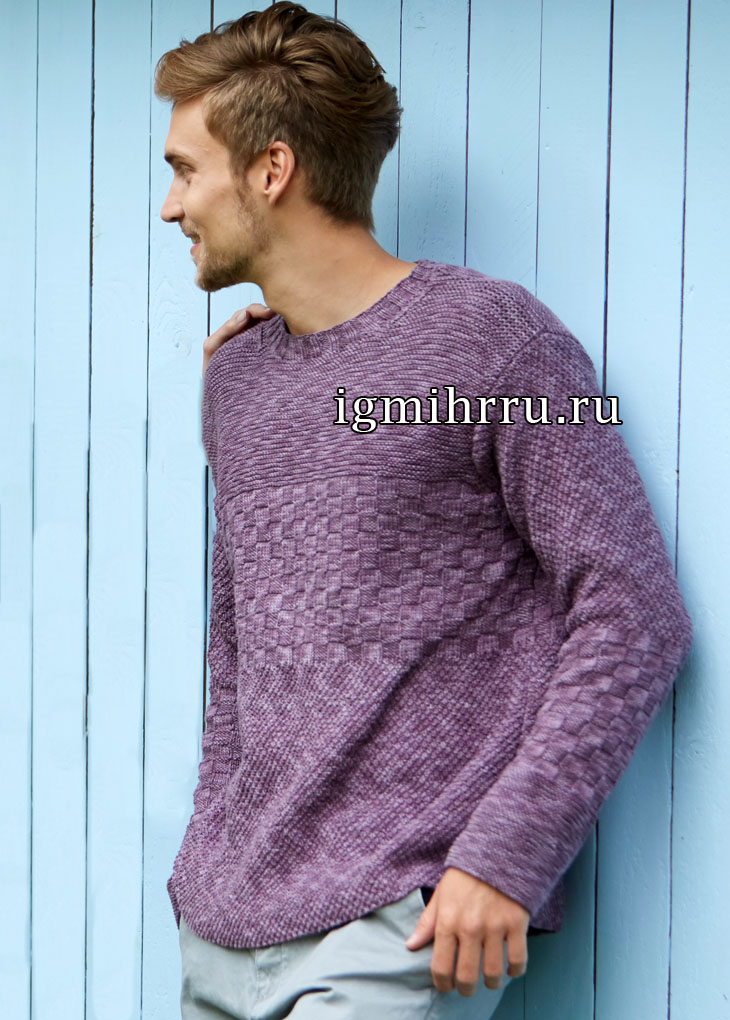 Вязание спицами. МУЖСКОЙ ДЖЕМПЕР С КЛЕТЧАТЫМ И ЖЕМЧУЖНЫМ УЗОРАМИ.