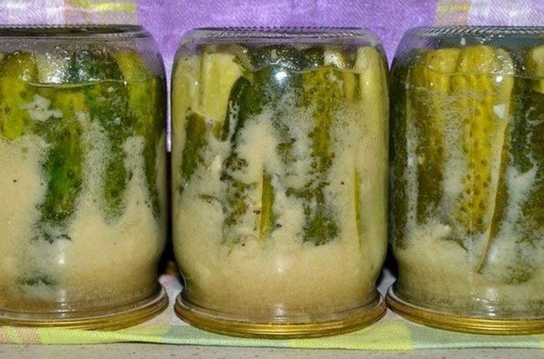 Почему-то именно этот рецепт огурчиков в маринаде обожаем всеми. Ведь для него мы берем не простой маринад, а горчичный. Это придает корнеплодам пикантный и насыщенный с остринкой вкус. Для такого рецепта подойдут любые огурцы, и некондиционные в том числе: корявые, переросшие, разнокалиберные, все те, которые в целом виде в банке не выглядят красиво. Этот рецепт предполагает очистку и нарезание плодов на ломтики.