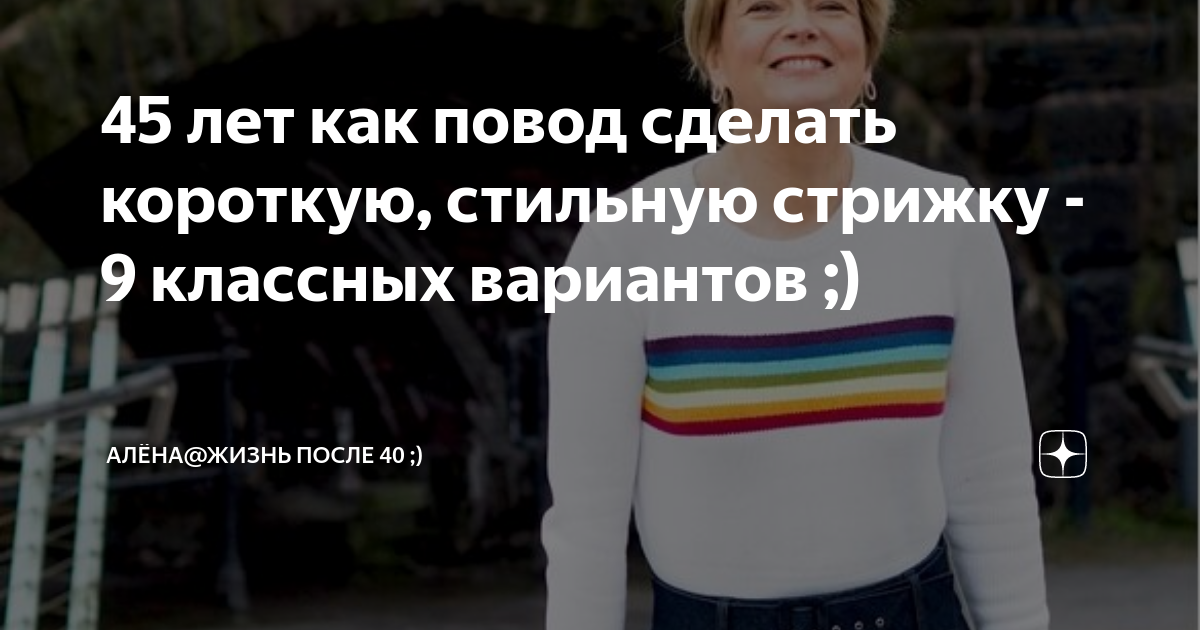 45 лет как повод сделать короткую, стильную стрижку - 9 классных вариантов ;) Я поклонницы короткой стрижки для женщин (да и для мужчин тоже ;). Midlifechic Недавно на одну из моих статей обрушился шквал негодования по поводу этих самых коротких стрижек. Какие доводы были у женщин? 1.
