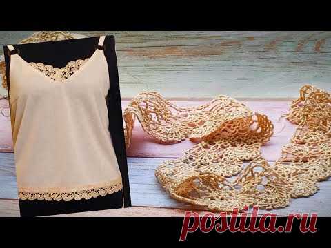 Вязание Кайма крючком Крючок+ ткань. Украшаем топ