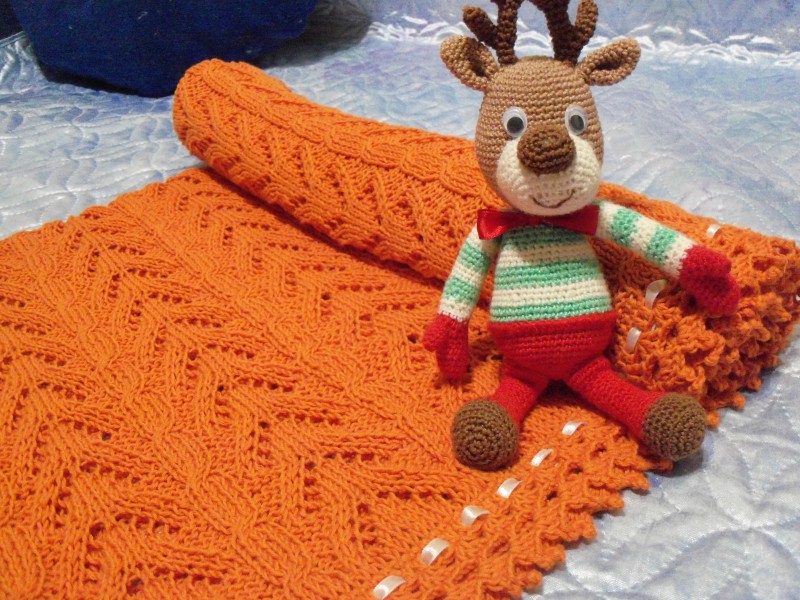 Детский плед и оленик. Хочу похвастаться сразу двумя работами. Детский плед связан мной, использовала хлопкрвую нить, спицы. А оленика связала моя дочка. Новогодние звёзды связаны спицами, можно использовать как игольницы или украшения на ёлку.