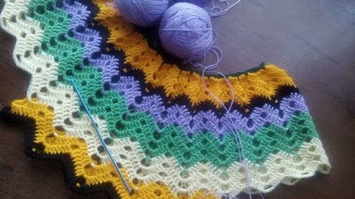 МК Красивое платье крючком ,узором "Зигзак" Часть-2-я.Вяжем подол платья