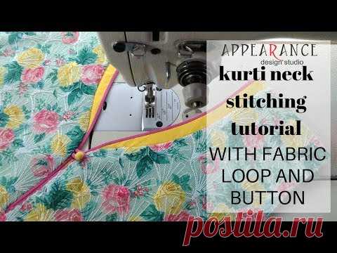 kurti neck stitching tutorial with fabric loop and button