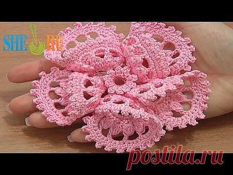 Цветок вязаный Урок 63 часть 2 из 2 Как вязать цветок с серединкой - YouTube