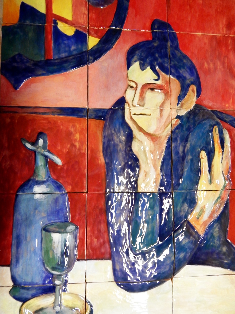 Лепное керамическое панно по мотивам картины П. Пикассо "Любительница абсента". Размер: 615 х 1025 мм.