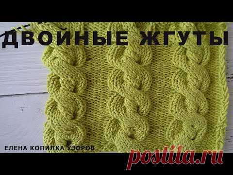 Узор спицами Двойные жгуты схема и описание/ Pattern knitting Double strands